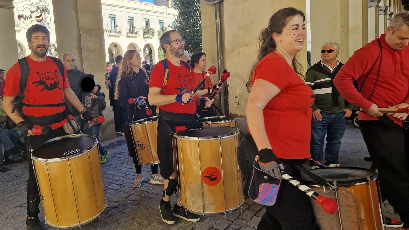La Sagrerina i la Bostikina van encapçalar la cercavila, que va recórrer els carrers des de Plaça Masadas fins als Jardins d’Elx, i nosaltres vam portar tot el ritme amb els nostres tabals mentre el Foguet acompanyava la festa.