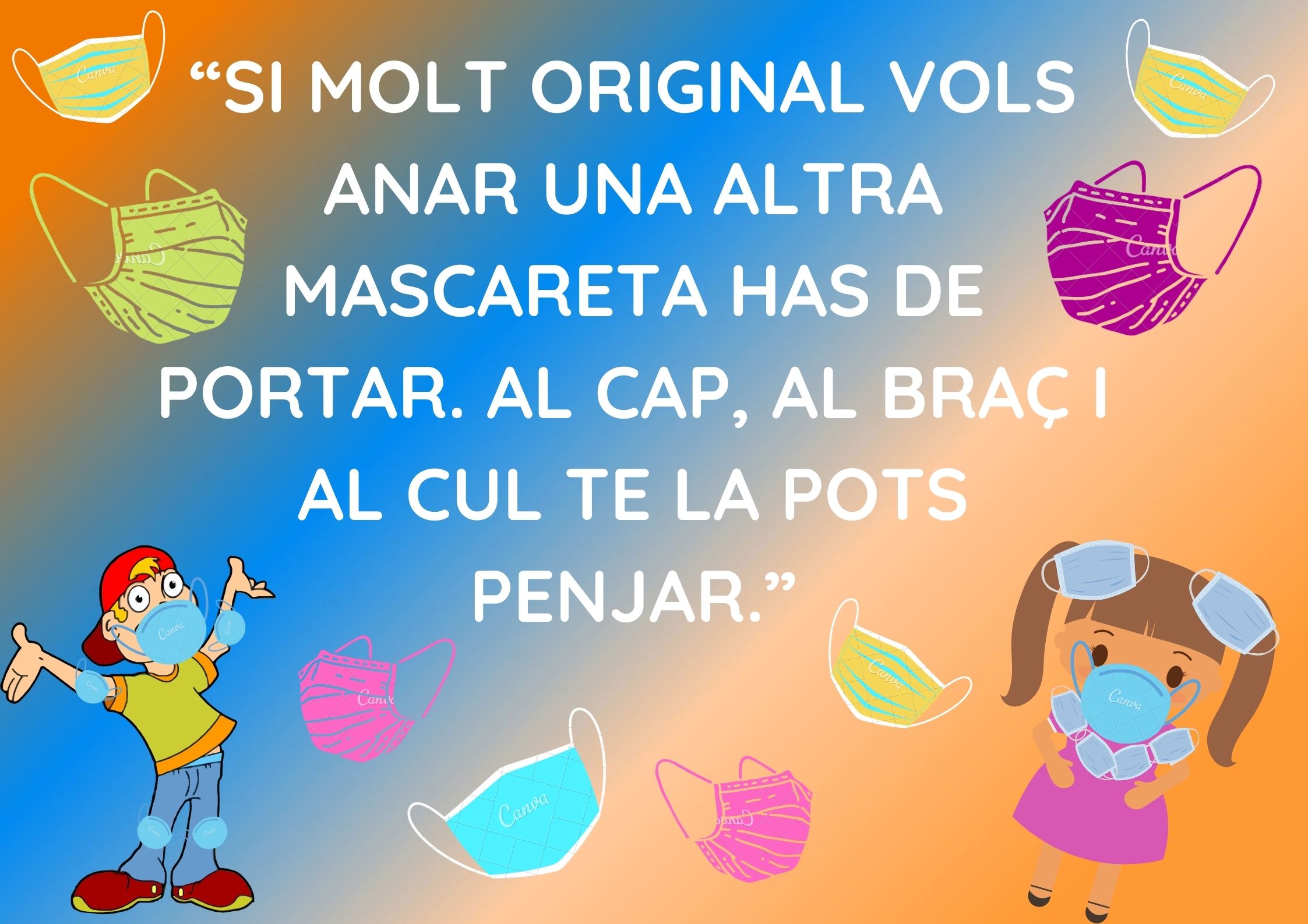 “Si molt original vols anar un altre mascareta has de portar. Al cap, al braç i al cul te la pots penjar.” ← Anterior Següent →