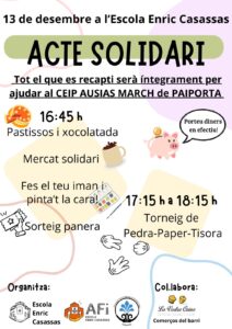 ACTE SOLIDARI PER RECOLLIR DINERS PER UNA ESCOLA DE PAIPORTA Diana Font11/12/24 Us esperem aquest divendres!