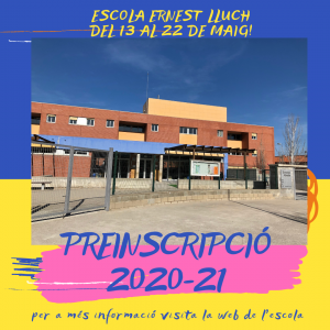 - Període de presentació de sol.licitud de preinscripció: del 13 al 22 de maig (telemàticament) i del 19 al 22 de maig (presencialment amb cita prèvia).