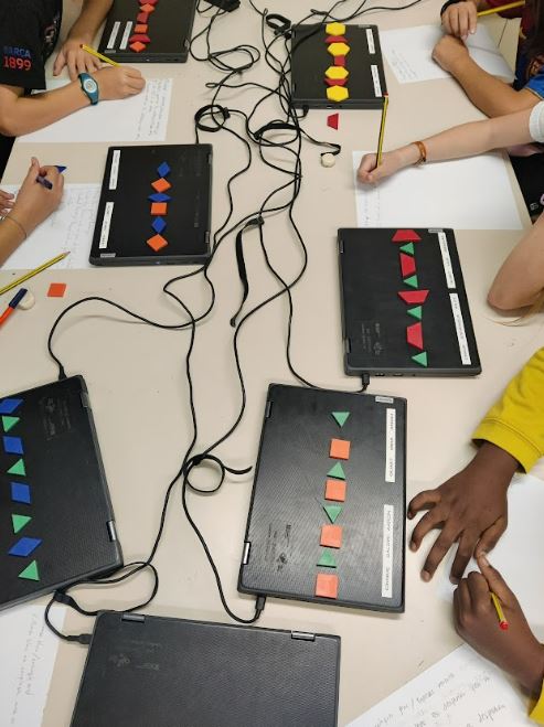 Durant l’hora setmanal que fem el PCMat, amb mig grup, a partir de la manipulació del material aprenem aspectes de la geometria relacionats amb la robòtica i la programació i ho posem en pràctica a partir de diverses aplicacions com poden ser l’Scratch, el Polypad,…