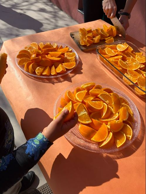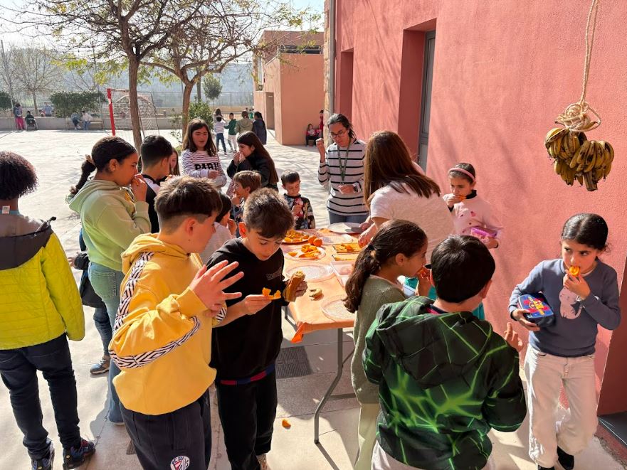 El 25 de febrer vam organitzar a l’escola un esmorzar saludable a base de taronges. Els nens i nenes de la comunitat de petits van gaudir-ne molt: primer van menjar a les classes i després també al pati, perquè els havia agradat tant que van voler repetir. Va ser tot un èxit!