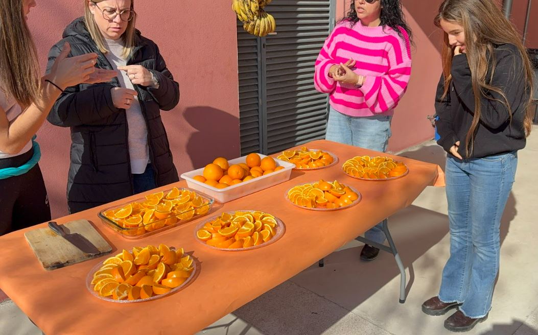 L’alumnat de 1r a 6è es va trobar les taronges a l’entrada de l’escola i tothom qui va voler en va poder menjar per esmorzar.