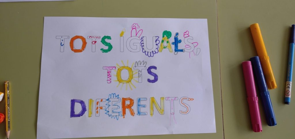 Com cada curs, durant el segon trimestre, treballem transversalment el projecte “Tots iguals, tots diferents”. Aquest projecte va neixer ja fa cinc anys per donar a conèixer les persones amb diverses discapacitats als nostres infants, posant-se a la seva pell. La inclusió real passa per veure la diversitat com una oportunitat d’aprenentatge de vida.