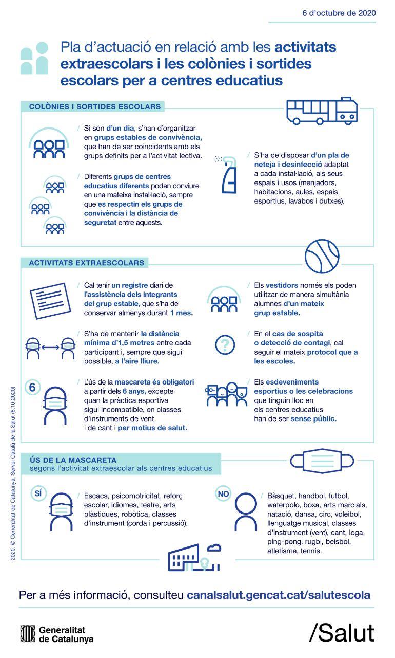 El 13 d’octubre el Consell Escolar va aprovar el Reglament anti Covid 19 per a extraescolars, sortides i colònies: PLA COVID D’ORGANITZACIÓ ESCOLAR EN COLÒNIES I SORTIDES