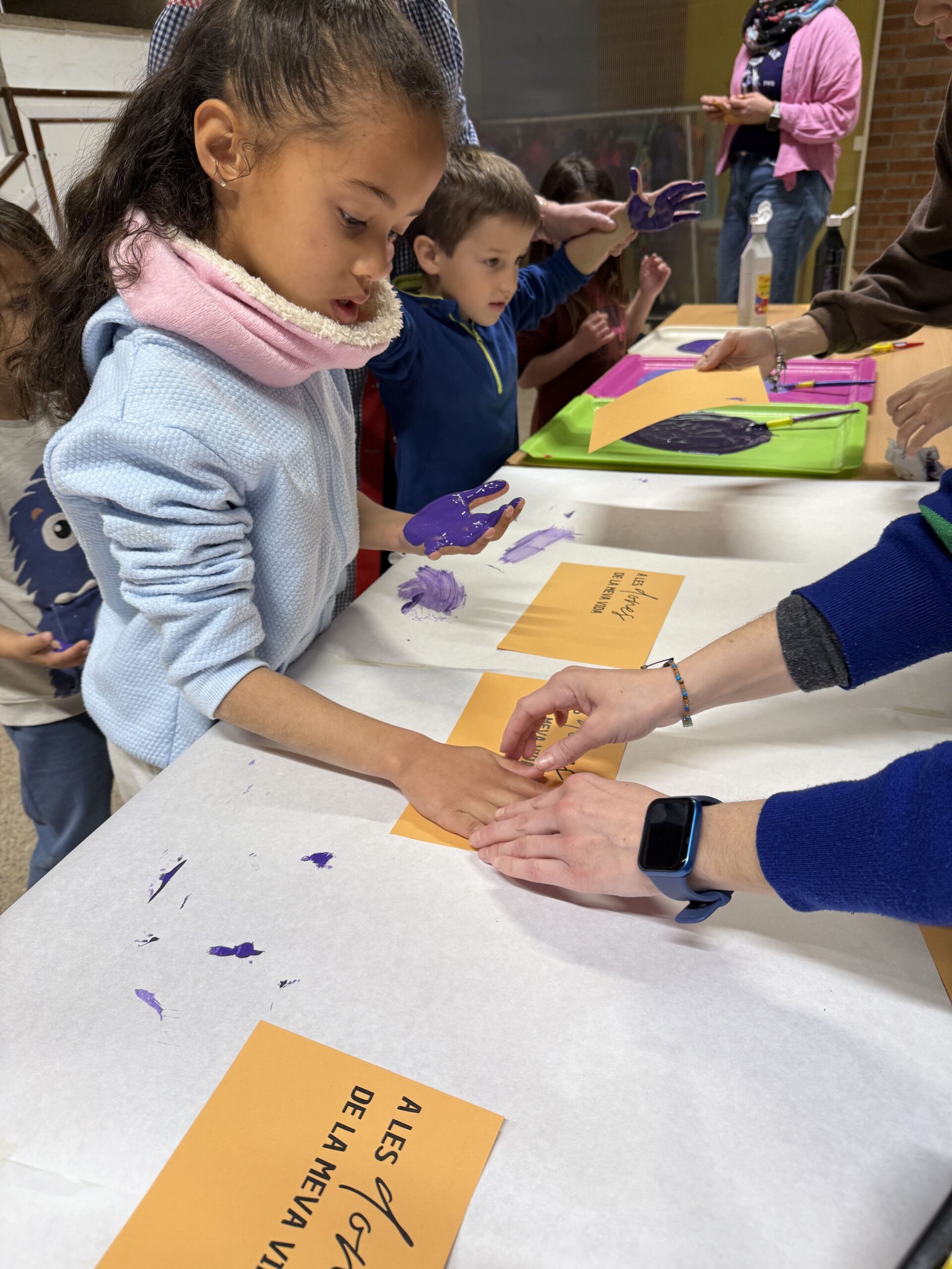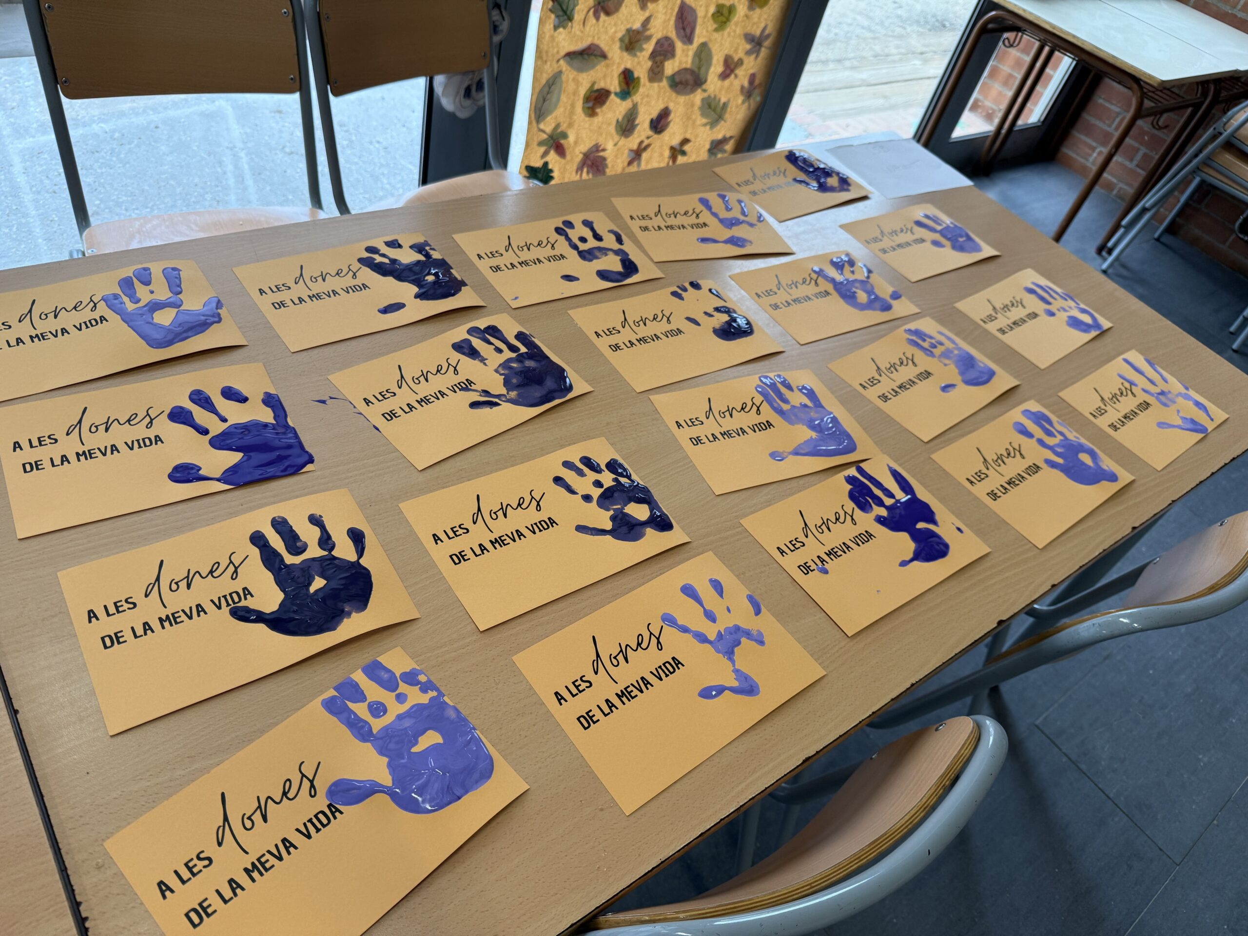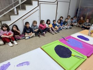 Tots els nens i nenes han participat en la creació d’un gran mural col·lectiu, on cadascú ha estampat la seva mà amb diferents tons de color lila, símbol de la lluita per la igualtat de gènere. Aquest mural representa la diversitat, la unió i la força de totes les dones del món.