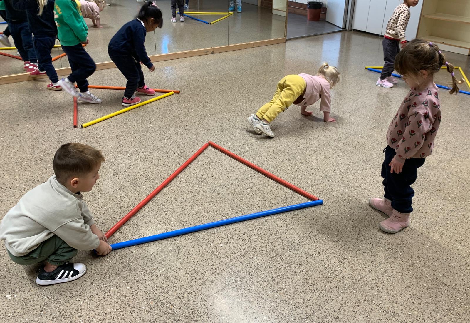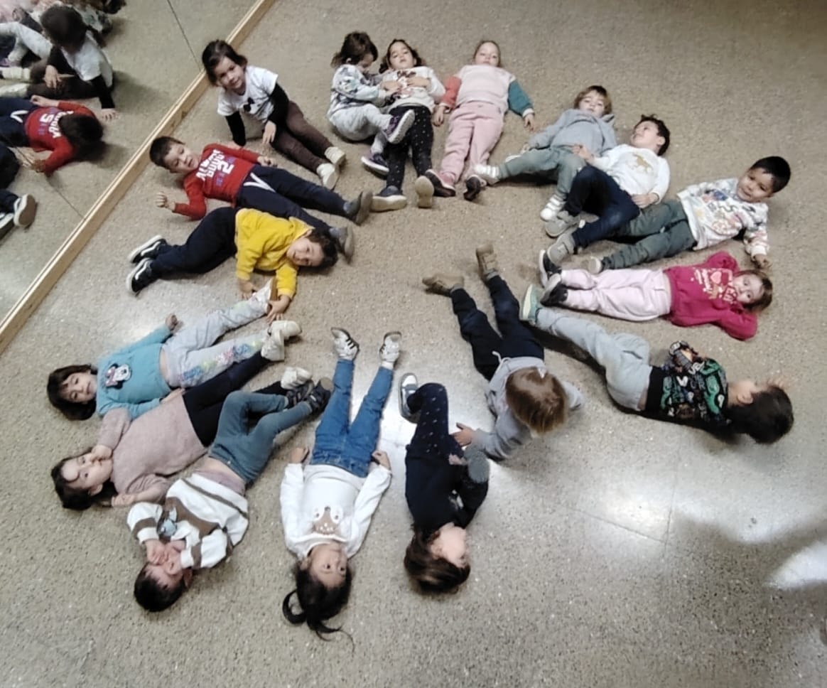 TREBALLEM LES FIGURES GEOMÈTRIQUES A I3Per Comunitat Petita / 14 de gener de 2025 / Comunitat petita I3 / Educació Infantil Fent psicomotricitat treballem les figures geomètriques: el cercle i el triangle.