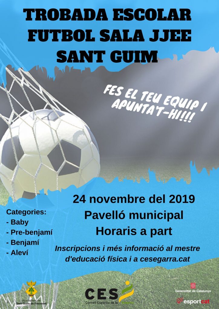 Us presentem la trobada escolar de futbol sala dels Jocs Esportius Escolars a Sant Guim de Freixenet del proper 24
