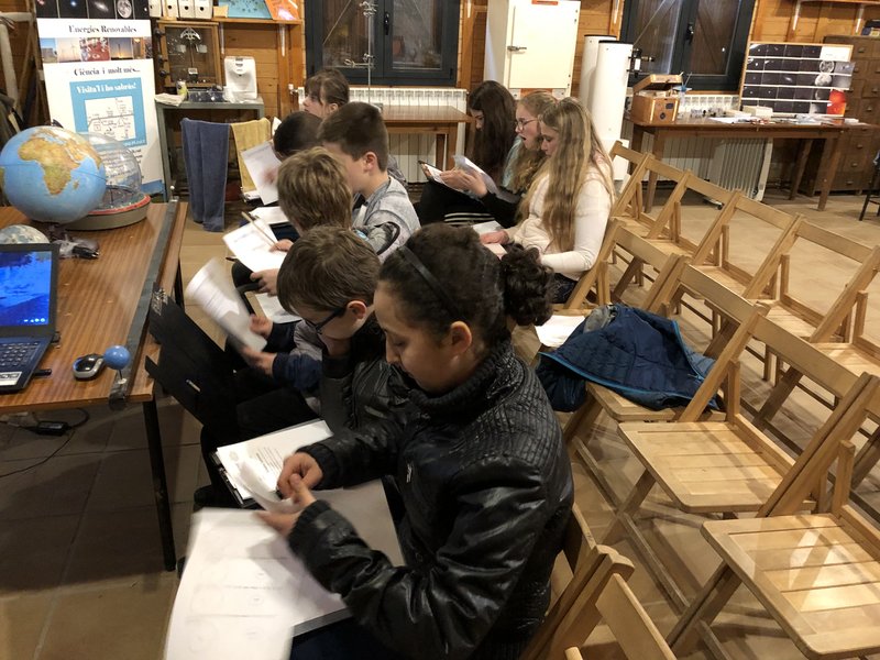 El dia 28 de Febrer els nens i les nenes de cicle superior van anar a l’observatori de Pujalt a fer un taller d’astronomia. Primer de tot ens vam presentar, després ens van dividir en dos grups: 5é va anar amb un monitor que es deia Bernat i 6é amb l’altre monitor que es deia Albert. La primera activitat consistia en mirar per un telescopi i localitzar la Osa Major que és una constel·lació que té l’Estrella Polar. En la següent activitat ens van explicar moltes coses sobre l’ Univers, les fases de la lluna els eclipsis de sol i de lluna, els moviments de rotació i translació de la Terra que dóna lloc al dia, la nit i les estacions respectivament… Després ens vam reunir 5é i 6é amb els dos monitors i ens van explicar diferents coses més sobre les galàxies, les nebuloses, les estrelles, els planetes, els forats negres…
