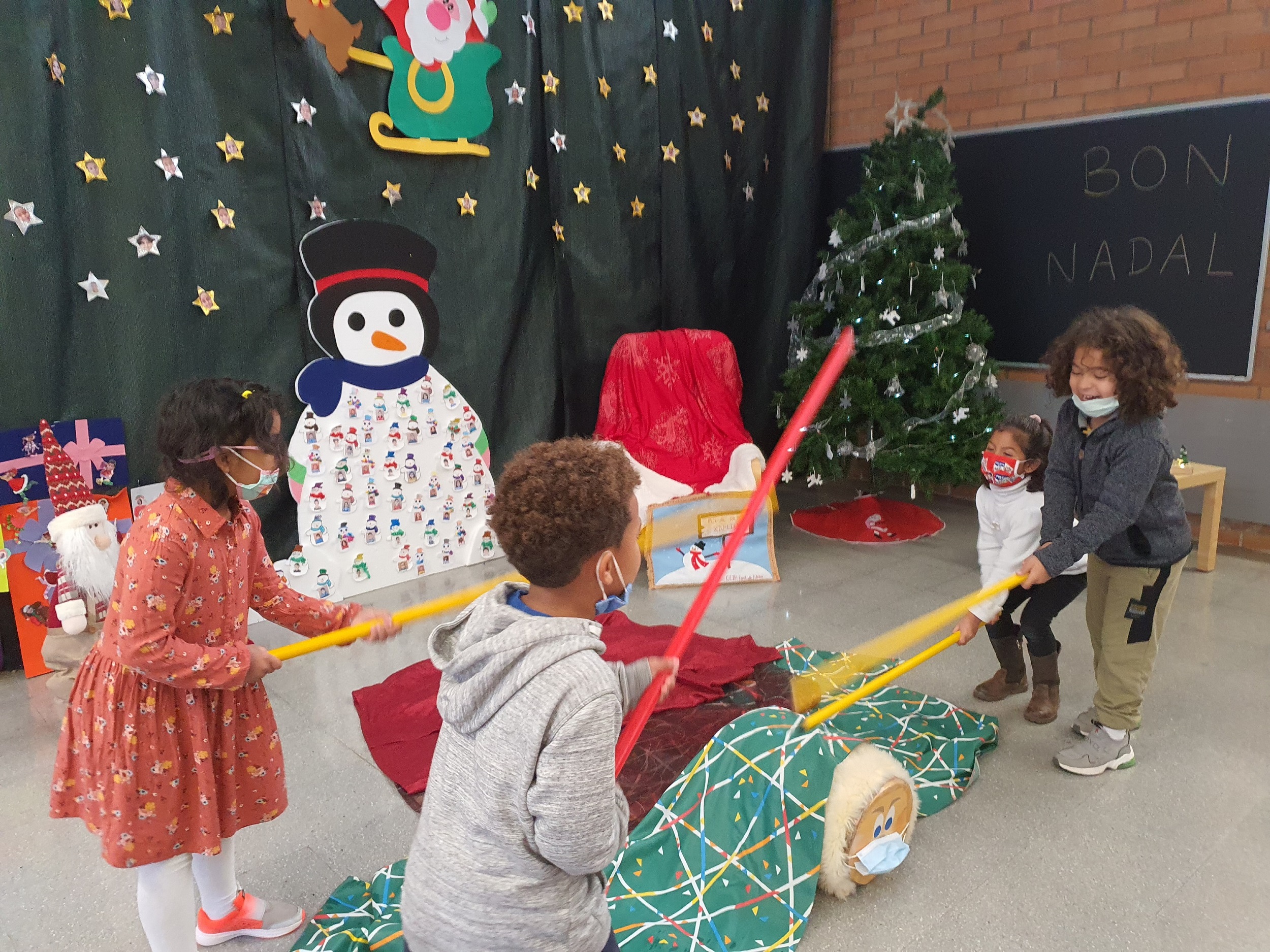 14/12/20Els nens i nenes de la classe de la Pinya han sortit aquesta tarda a buscar el Tió pel pati de l’escola.L’hem trobat amb molt de fred.Ara el tenim a dins l’escola ben tapadet i esperant que li portem menjar.
