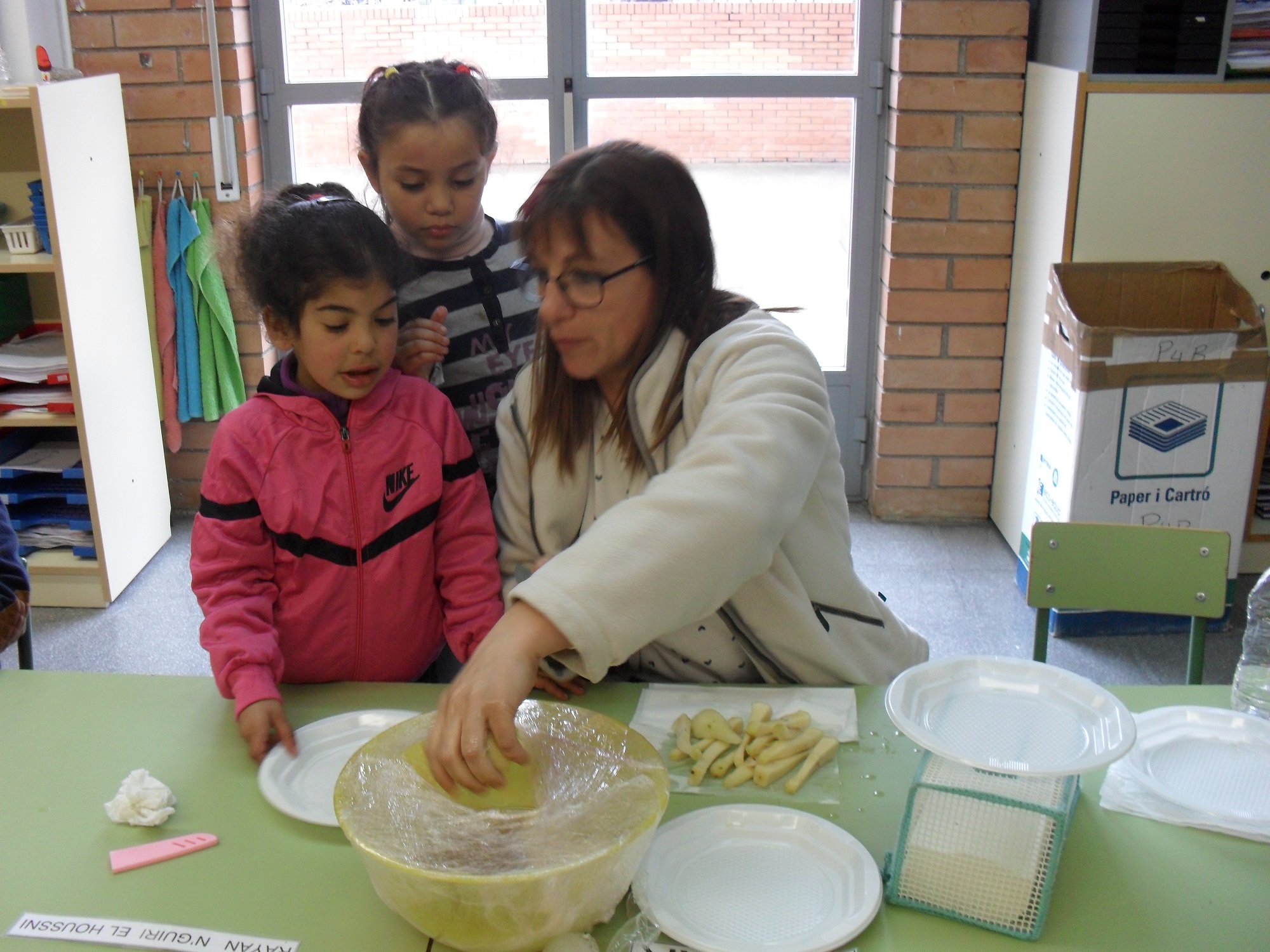 A cada cicle hi ha un mestre/a i uns alumnes que ens ajuden a repartir-la per les classes. En aquest recull de fotos