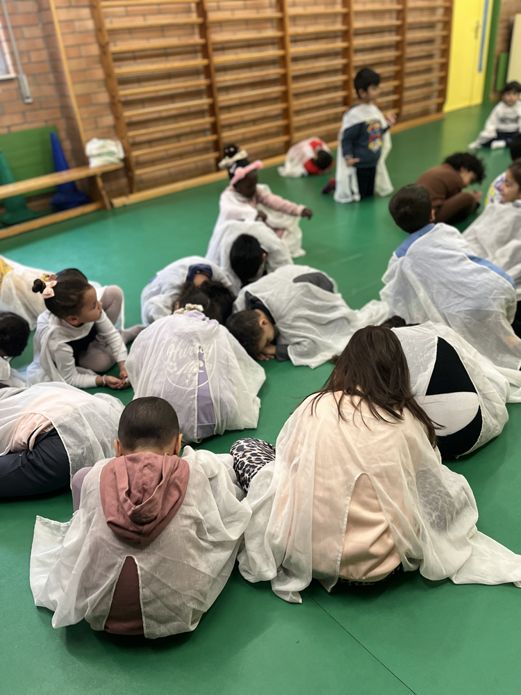 Avui ens hem realitzat un Taller de dansa pels infants de la Comunitat Petita: Els cignes i el rei, representat per l’Anna Alonso. Aquesta història ens narra el descobriment del conte dels cignes i el rei, i a través del joc, se’ls introdueix en el món del moviment corporal i la dansa.