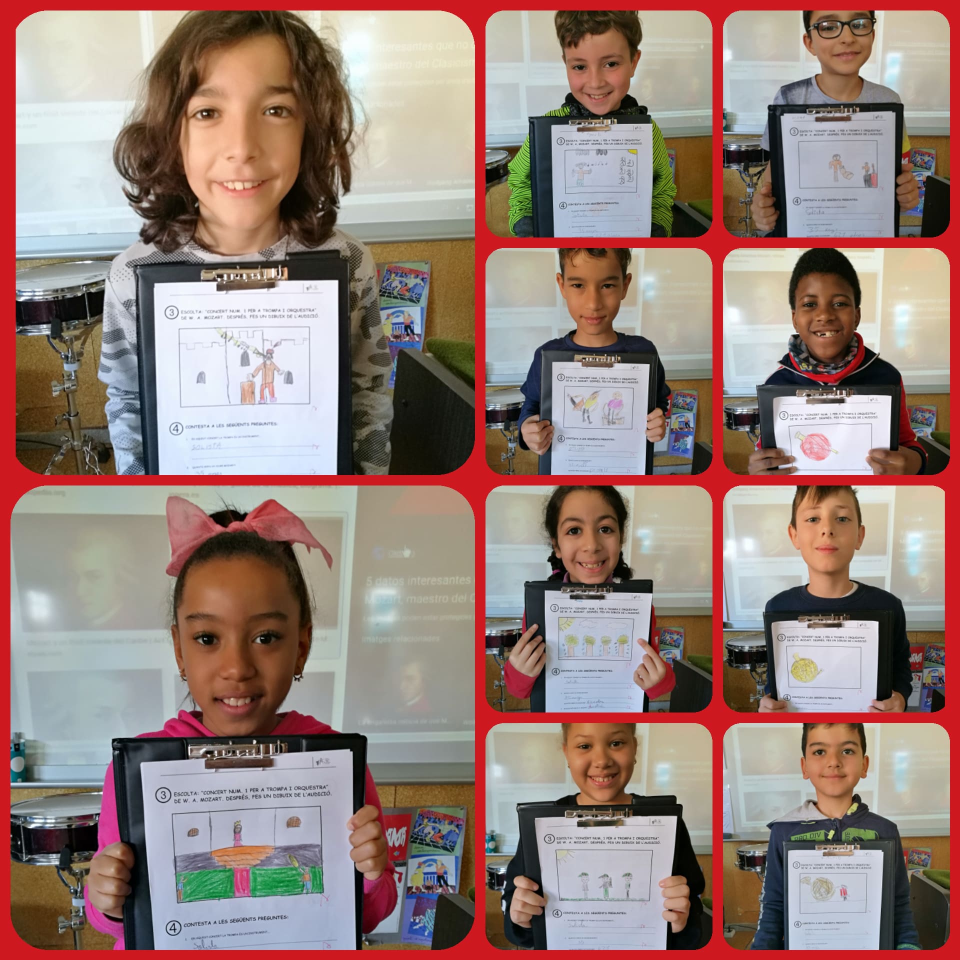 Estem treballant els instruments de vent metall i avui hem escoltat el Concert Núm 1 per a trompa i orquestra. Els nens i nenes hem fet un dibuix de l’audició, sobre quines emocions ens trasmet. També hem parlat d’un geni musical: el Mozart. Va viure només 35 anys però va ser un músic prodigiós fent 621 obres durant la seva vida.
