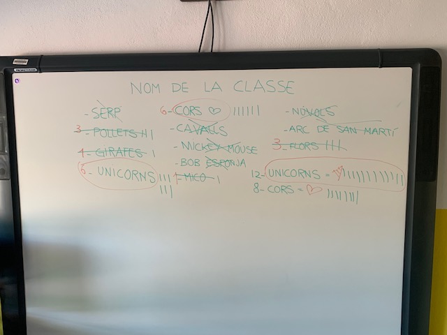 A P4 hem escollit el nom de la nostra classe i per arribar a saber què voliem hem fet una pluja d’idees amb les propostes que tenien els infants de l’aula. Han sortit idees molt xules! Però a l’hora de fer votacions, la guanyadora ha estat…