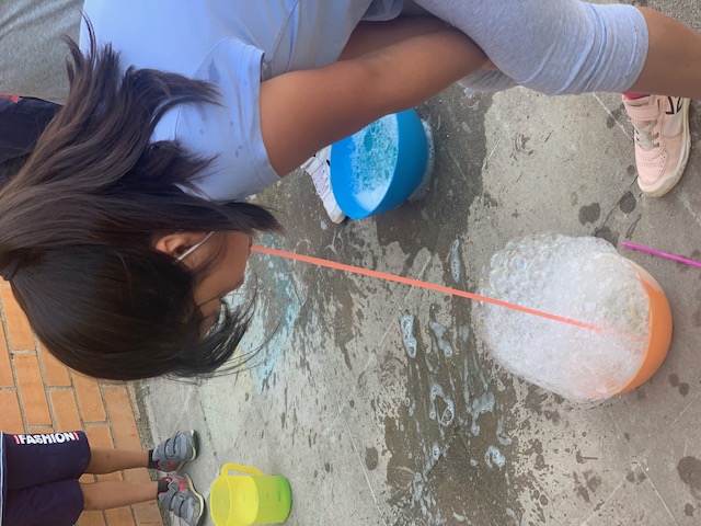 Està clar que els últims dies ha fet molta calor i els nens i nenes de la classe de la Pinya (P5) hem jugat amb aigua fent diverses activitats: bombolles de sabó, escuma, experimentar amb fang i festa de l’aigua.