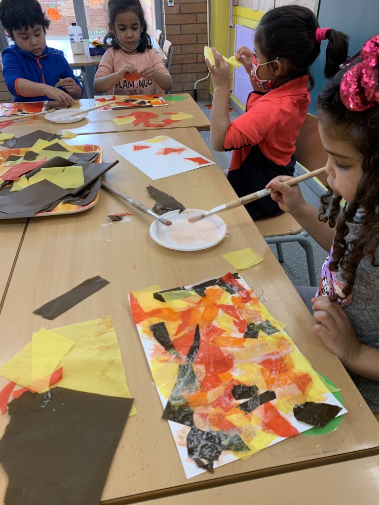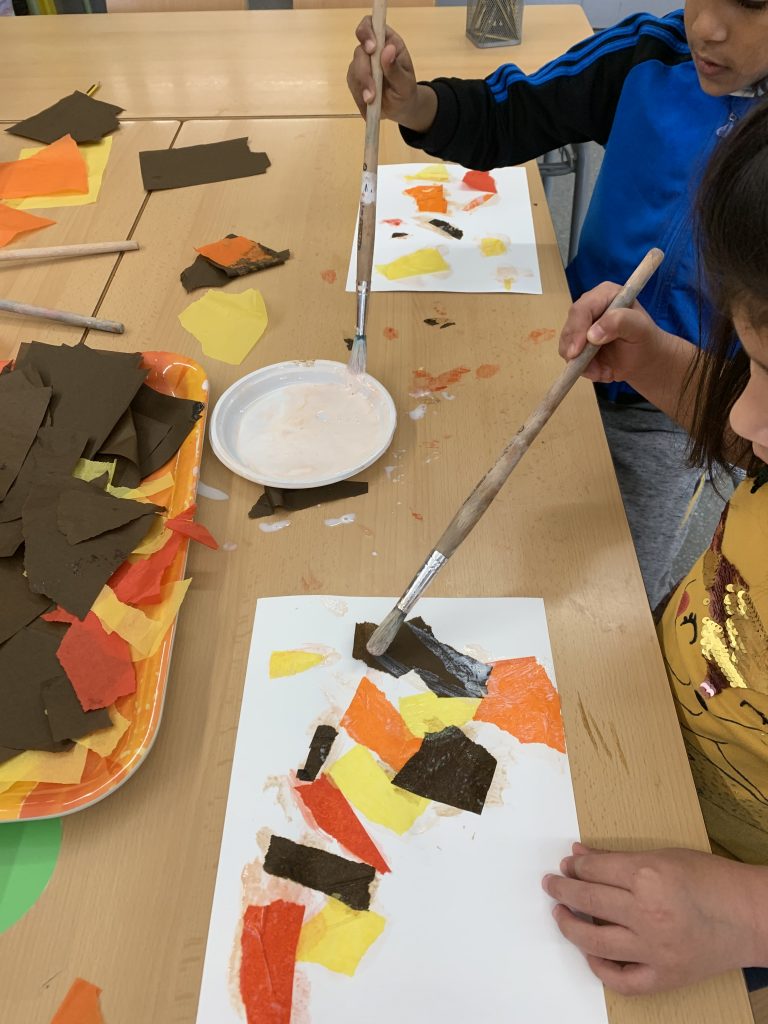 Fem Art amb la tècnica de collage! Azahara M.23/11/20 A P5 hem treballat la pinça i la motricitat fina esquinçant paper de seda i després els hem enganxat amb cola a partir de la tècnica de collage amb colors de la tardor i ens han sortit quadres xulíssims!!!