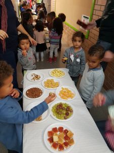 Els nens i nenes del cicle,aquest dimecres al matí hem fet un esmorzar amb fruïts de la tardor.Per la tarda hem anat a la sala de psicomotricitat i parque hinchable hem cantat cançons acompanyats de la guitarra de la Raquel.