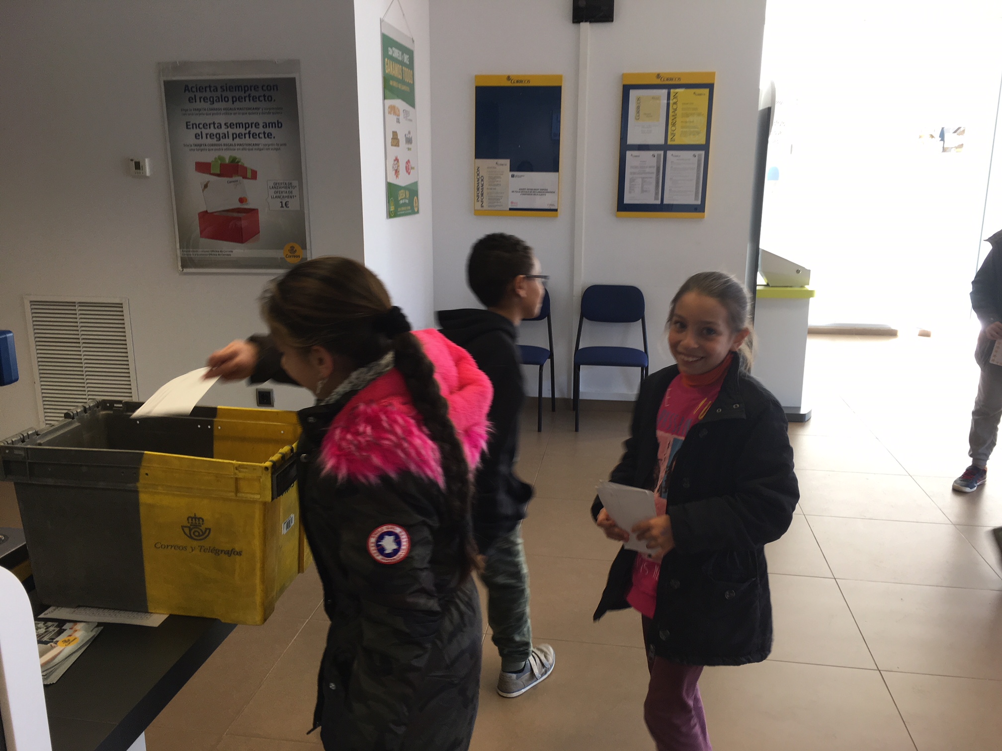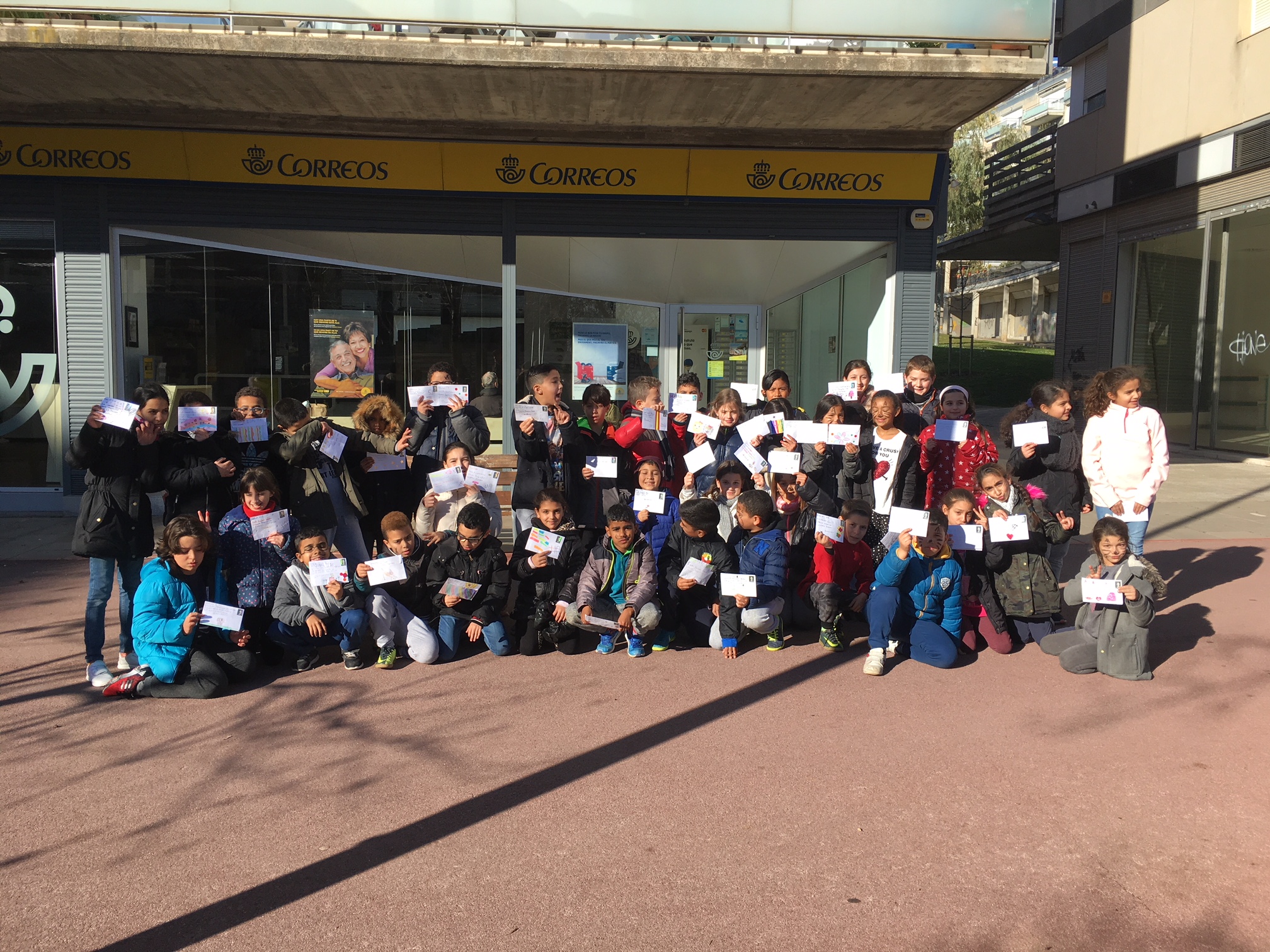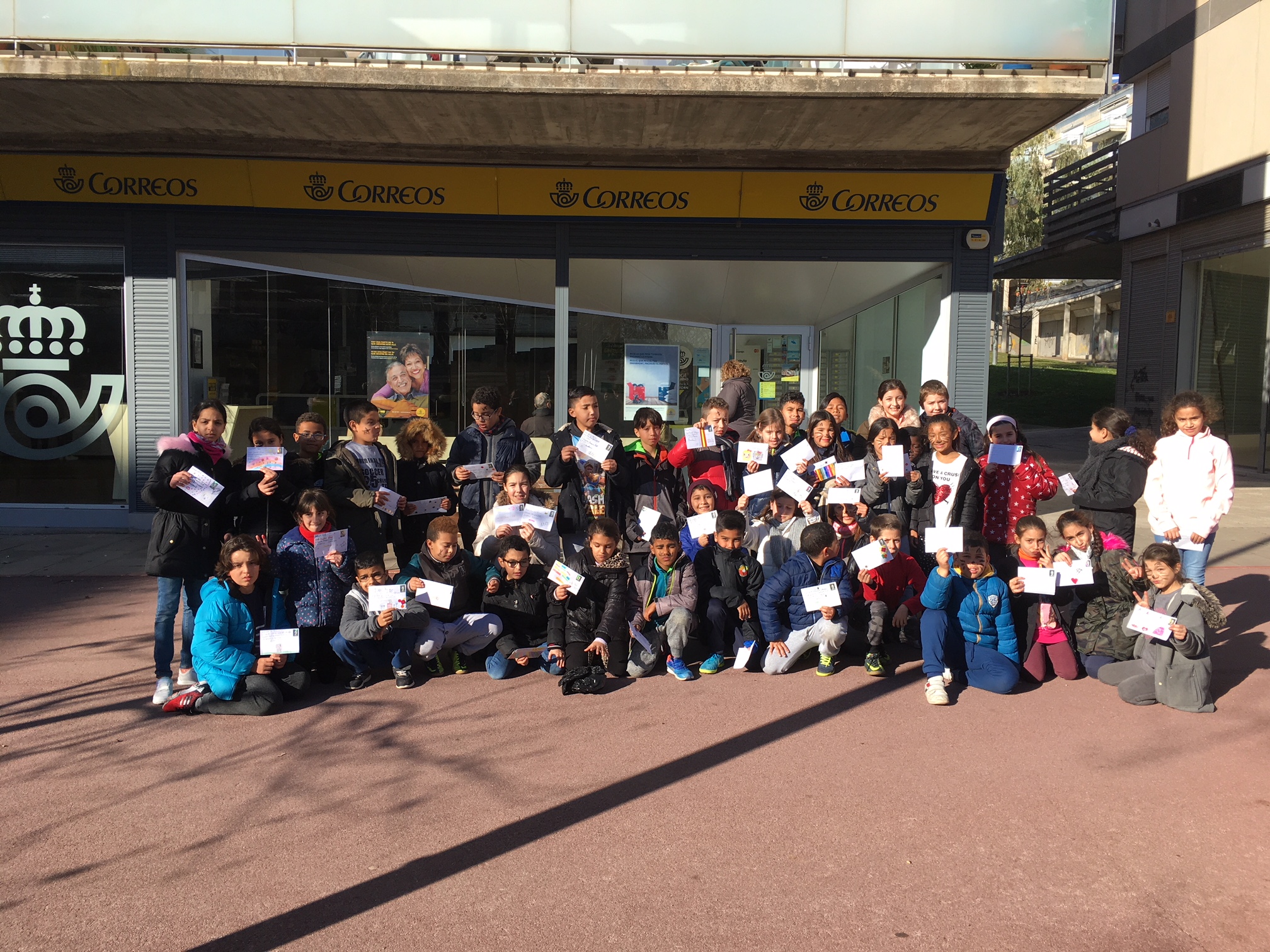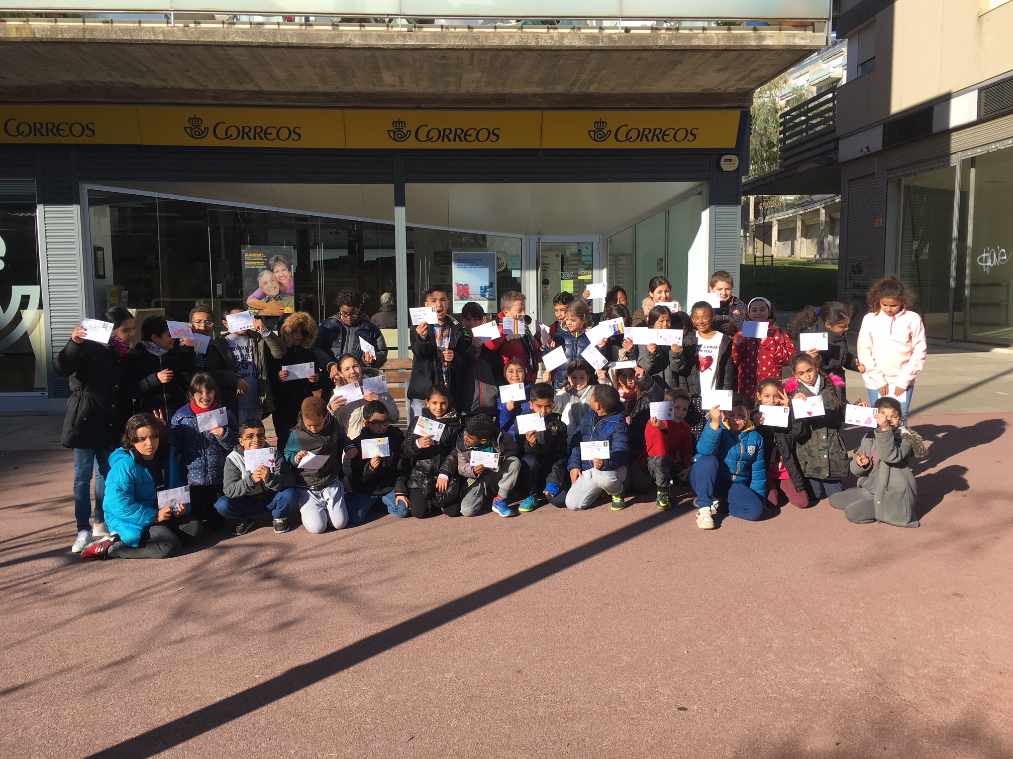 La carta primer la vam fer en brut i desprès la vam passar a un full en net i algunes les vam decorar. La carta la vam ficar a dins d’un sobre que vam decorar molt maco. Vam escriure el destinatari amb la direcció de la seva escola i el codi postal, i també el remitent (la nostra direcció). Al acabar, vam enganxar el segell. Per tal que rebin les cartes, aquesta tarda hem anat a Correus a deixar-les totes.