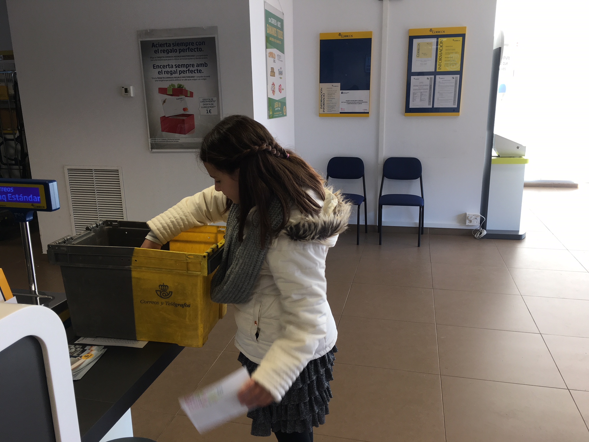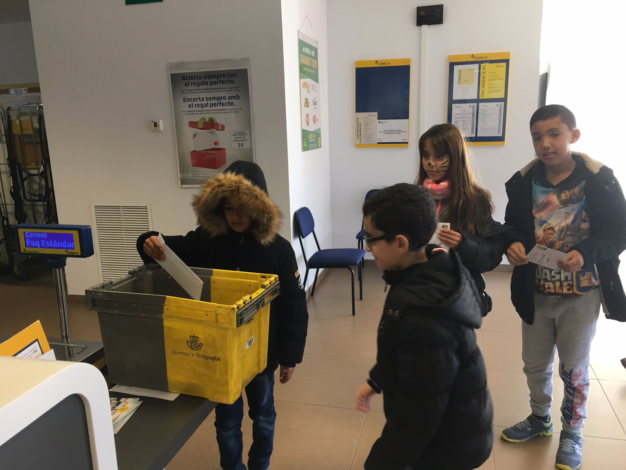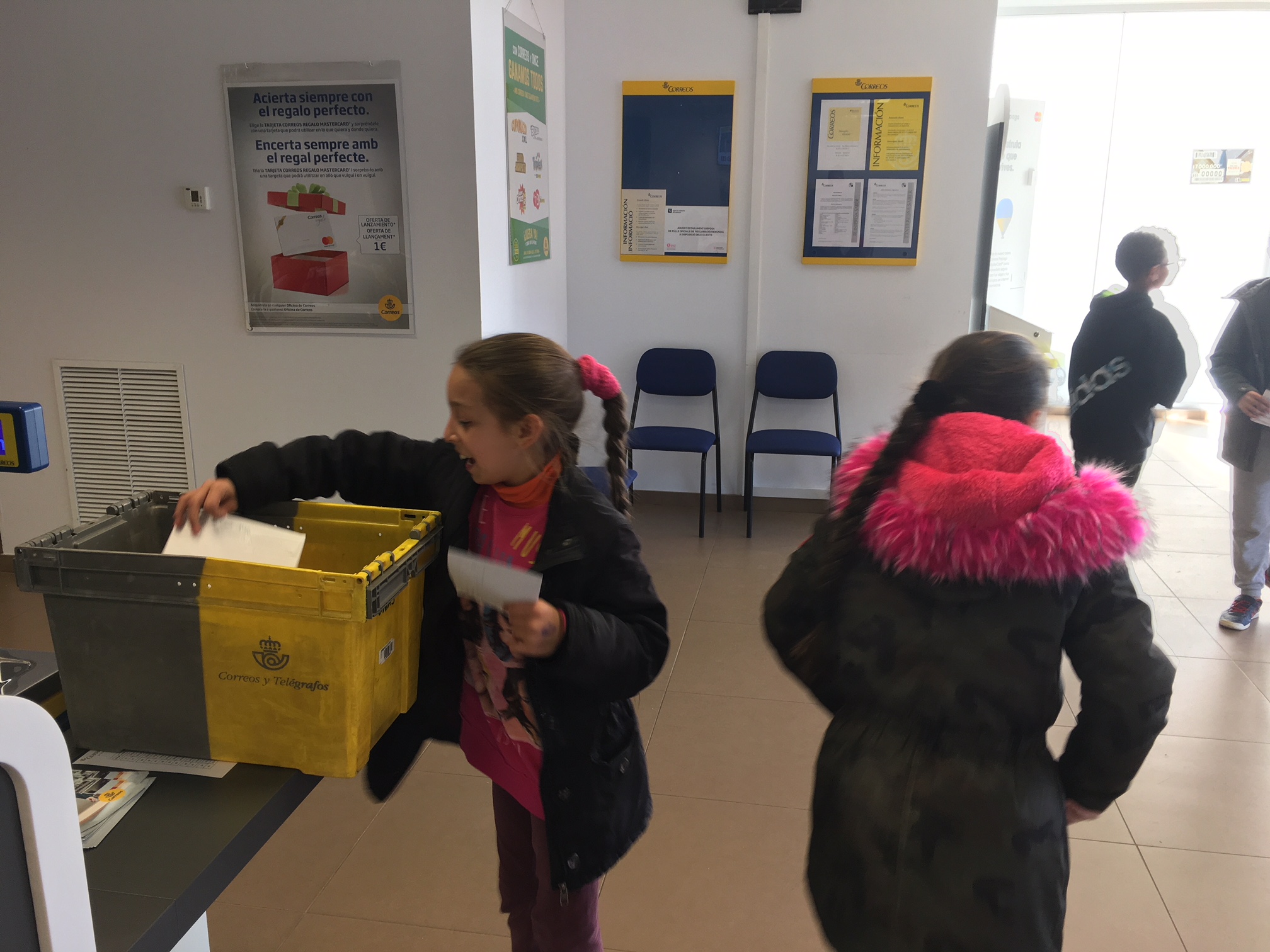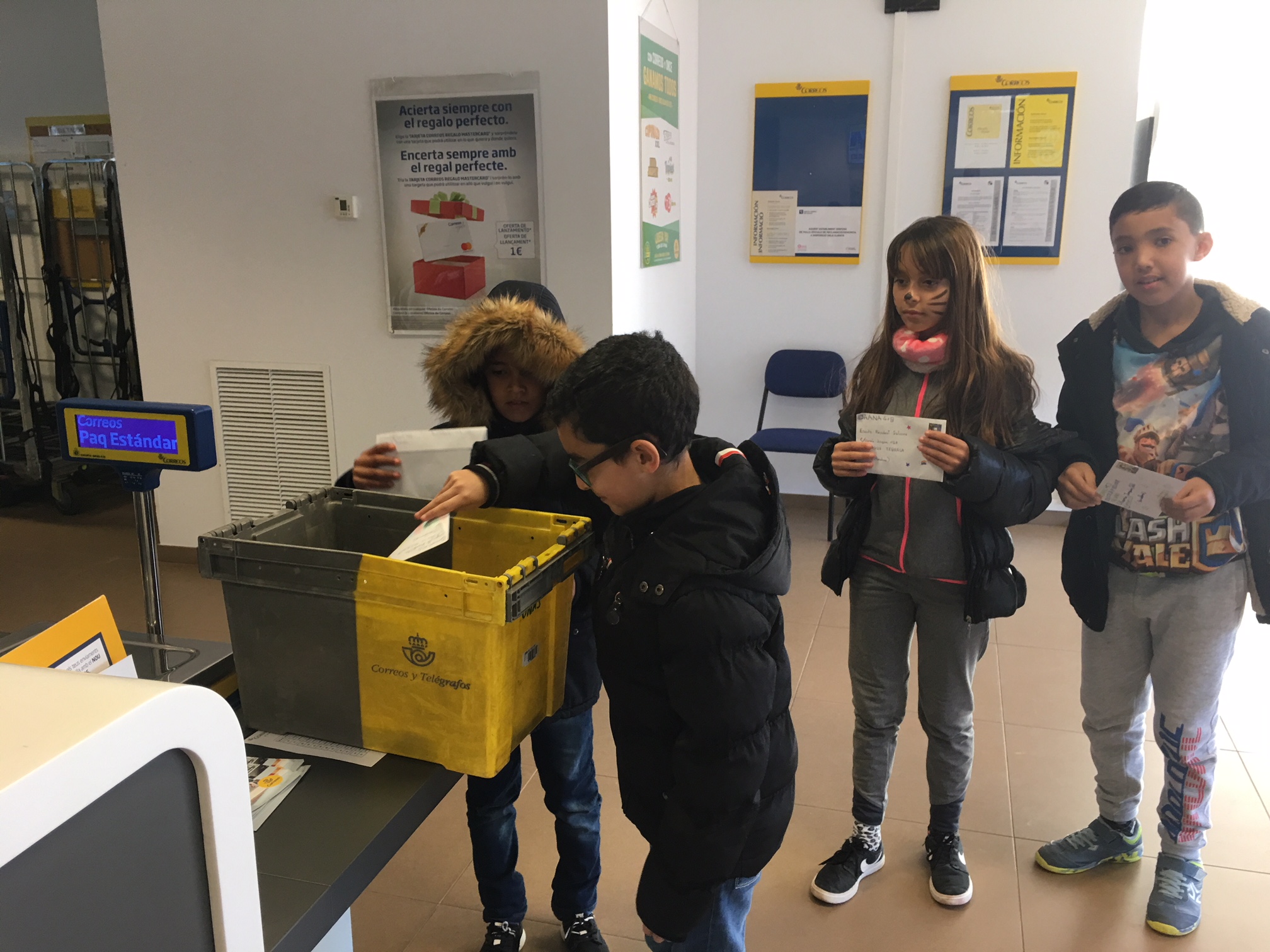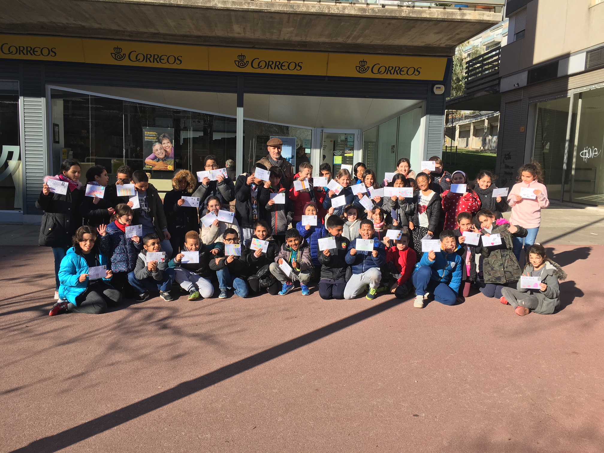 La carta primer la vam fer en brut i desprès la vam passar a un full en net i algunes les vam decorar. La carta la vam ficar a dins d’un sobre que vam decorar molt maco. Vam escriure el destinatari amb la direcció de la seva escola i el codi postal, i també el remitent (la nostra direcció). Al acabar, vam enganxar el segell. Per tal que rebin les cartes, aquesta tarda hem anat a Correus a deixar-les totes.