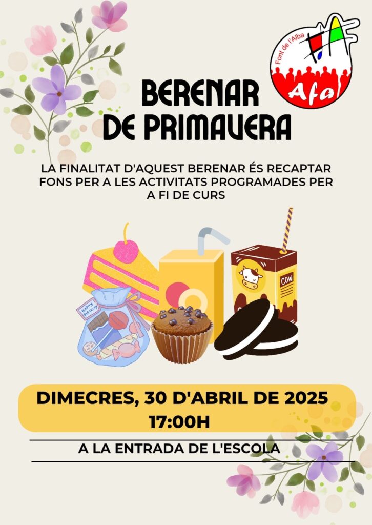 Aquesta setmana el Font de Notícies us informa del berenar de primavera organitzat per l’AFA, de les dates de les proves diagnòstiques de 4t i de 6è, de la sol·licitud dels ajuts per al menjador, de les activitats de Sant Jordi i dels dies que l’escola romandrà tancada al llarg d’aquest megapont.