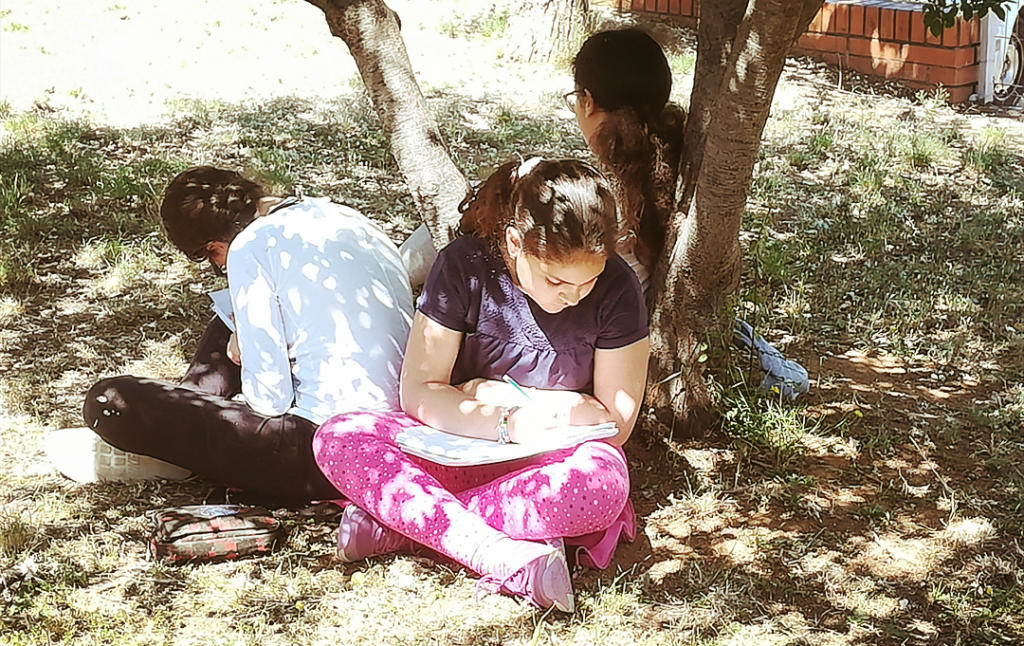 Tardes sota l’ombreta Marta López07/06/19 Passem l’última tarda d’aquest curs 2018- 2019 sota l’ombreta dels arbres del jardinet de l’escola amb un bon llibre o escrivint rimes i poemes.