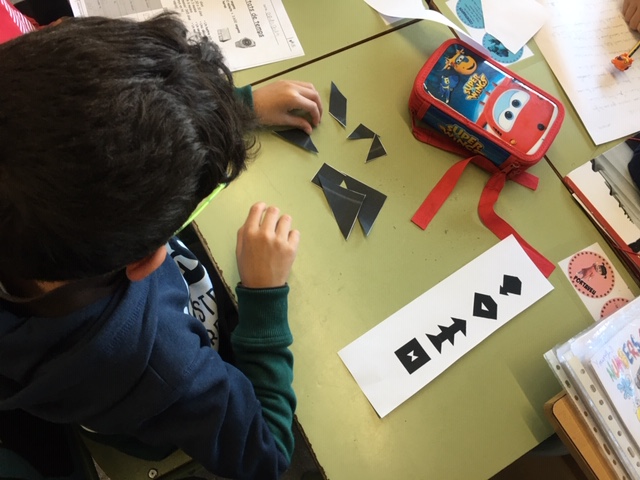 Els alumnes de cinquè aquesta setmana estem treballant amb el Tangram. El Tangram és un trencaclosques d’origen xinés que aporta infinitat de beneficis.