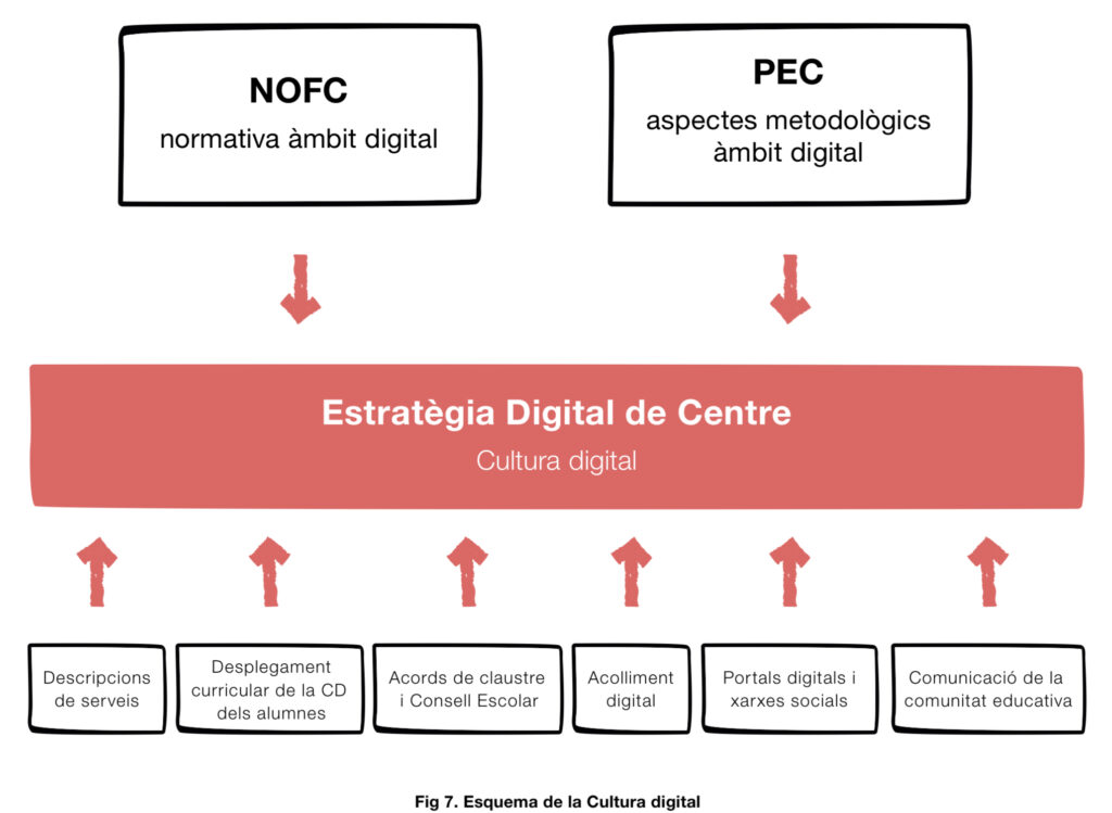 La segona part de l’EDC permet recollir i tenir unifica- des totes les accions que el centre ja realitza en l’àmbit digital. Fruit de l’experiència del centre, però també de l’aplicació de la part més estratègica de l’EDC, els cen- tres defineixen procediments, protocols, normes, acords i plans per assolir les competències digitals. És interes- sant que estiguin recollits en la segona part del docu- ment de l’EDC, ja que permet tenir una referència única en el centre.