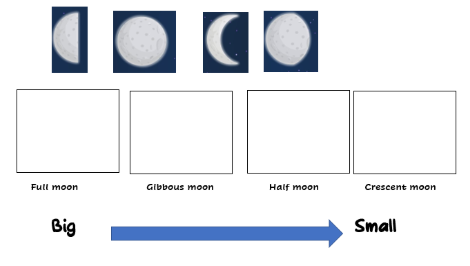 Activity 2: Order the phases of the moon from bigger to smaller. Ordeneu les fases de la lluna de gran a petit.