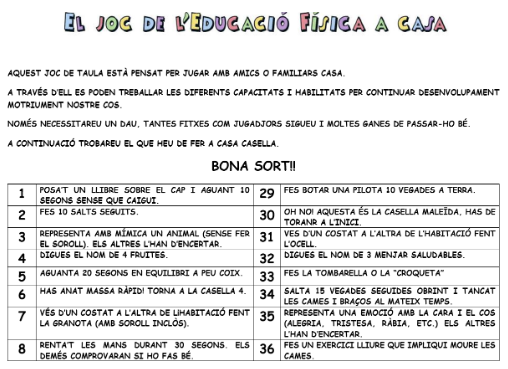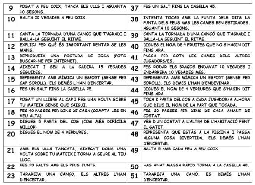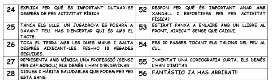 Utilitza un dau per anar avançant per aquesta graella i anar realitzant els petits reptes que us proposa. Envia’ns alguns dels reptes que t’han tocat fer.