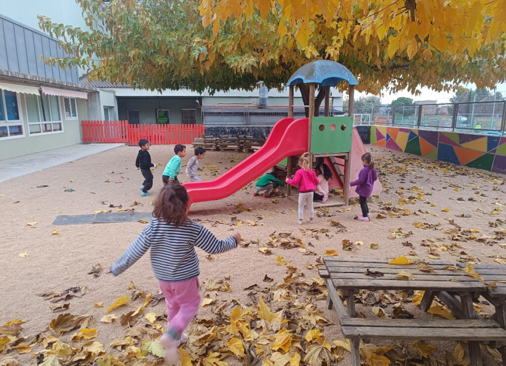 I la setmana passada ens va arribar a cada classe d’infantil una carta dient que el tió ja havia arribat i l’havíem d’anar a buscar! Vam anar al patí a buscar-lo, que estava amagat.