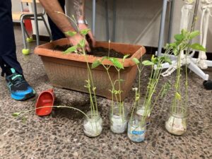 Per tal de veure com creixen les plantes, hem plantat llavors de mongetes en uns gotets i estem observant el seu creixement. Després les hem passat a una jardinera amb terra i finalment, les trasplantarem al nostre hort.