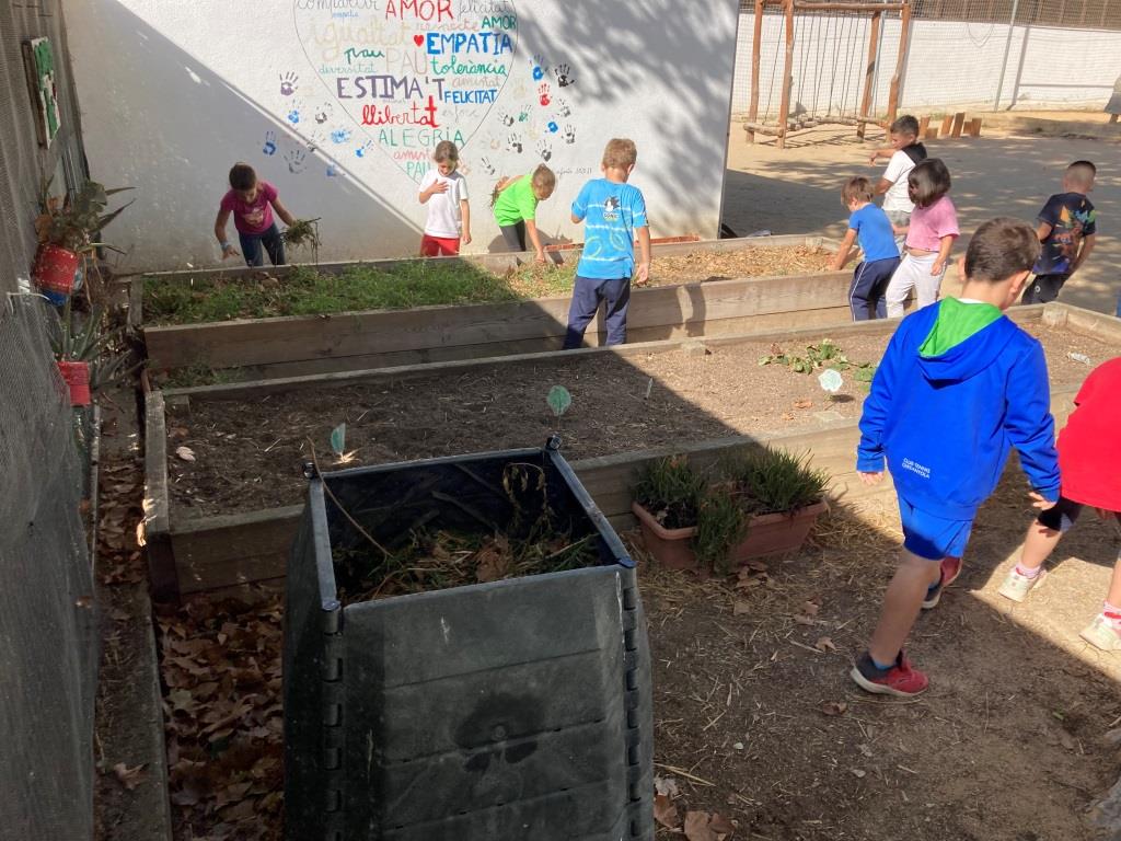 Per poder plantar-les a l’hort, primer hem preparat l’espai, traient les males herbes, les fulles, les pedres i removent la terra per tal d’airejar-la.