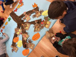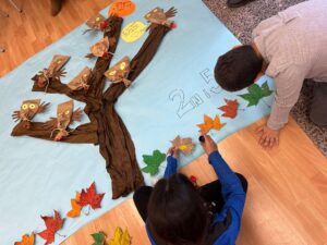 Ahir va ser un dia ben especial… vam celebrar La Castanyada! Durant el matí, padrins (5è) i fillols (2n A) ens vam reunir per a fer una activitat molt especial, plena de creativitat i complicitat. Junts vam elaborar un mural d’un gran arbre ple de mussols, fent servir els colors de la tardor i afegint-hi rodolins ben divertits i enginyosos. Aquesta estona compartida va servir per a reforçar el vincle entre padrins i fillols, i va omplir l’escola d’un ambient festiu i engrescador que ens va acompanyar al llarg del dia.