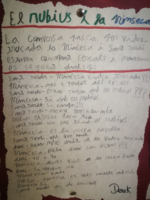 Enguany, amb motiu de la pandèmia, hem realitzat activitats diferents, adaptades a la situació i volem compartir-les amb tot@s vosaltres. A continuació, veureu cadascuna de las produccions que han fet els/les vostres fills/es. El tema que hem triat era fer un diàleg on havien d’aparèixer en Sant Jordi, la princesa i el drac. Veureu com els nostres artistes han tirat d’imaginació i creativitat creant personatges inventats del món de la fantasia. Esperem i desitgem que passeu una bona estona visualitzant-los.