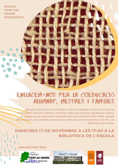 Enllacem-nos per la Coeducació: Alumnat, Mestres i famílies. Tallers de relacions igualitàries i lliures de violència que realitzarem properament amb els vostres fills i filles.
