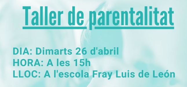 El proper dimarts 26 d’abril realitzarem el primer taller de parentalitat amb l’equip KOMTÜ, dirigit a totes les famílies del centre que vulguin assistir.