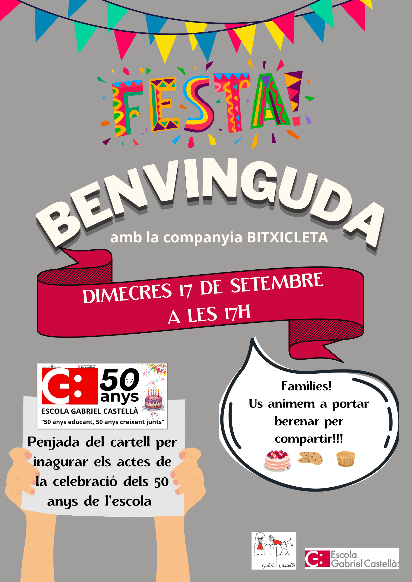 Animeu-vos a venir el proper dimecres 17 de setembre a les 17h a l’escola a celebrar la benvinguda d’ aquest curs i els 50 anys de l’escola. @ajigualada @ensenyamentigualada @igualadajove @culturaigualada @educaciocat