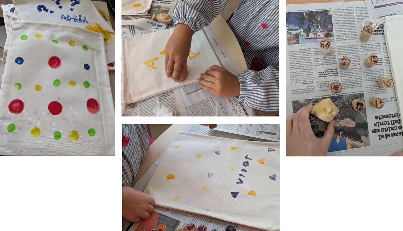 Amb l’ajuda de les famílies, van a crear segells i tampons casolans: patates tallades, esponges, taps i cartró que es converteixen en eines per dir al món el que pensem i sentim.