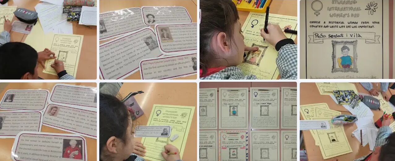 Com ja sabeu, l’alumnat de 4t participem en un projecte eTwinning titulat “International book of friendship”. Una de les activitats que s’han proposat per a març ha estat que cada país doni a conèixer les seves dones més importants al llarg de la història. Així, que els nens i nenes de 4t hem escollit dones reusenques que ja coneixíem una mica, com la Teresa Miquel o la Roseta Mauri, dones catalanes com la pedagoga Rosa Sensat o la pilot Pepa Colomer i dones de la resta d’Espanya com Clara Campoamor o Rosalía de Castro.