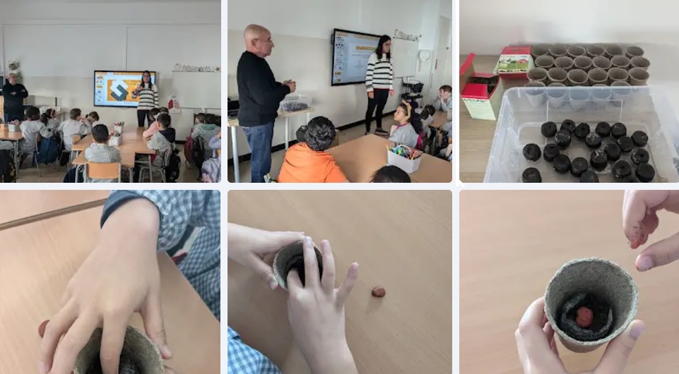 Les nenes i nens de 2n i 3r hem participat en el taller «Pagesia gran a l’escola», de la Fundació Pagesos Solidaris. L’Ainhoa ens ha explicat els conreus més abundants al Baix Camp i el Manel, que és pagès, ens ha parlat de la seva feina al camp, les eines i les màquines que utilitza i de la importància d’estimar la terra. Després, hem plantat llavors de julivert, espinacs i faves en uns testos biodegradables per a que puguem trasplantar les llavors a casa. Ens ho hem passat molt bé!