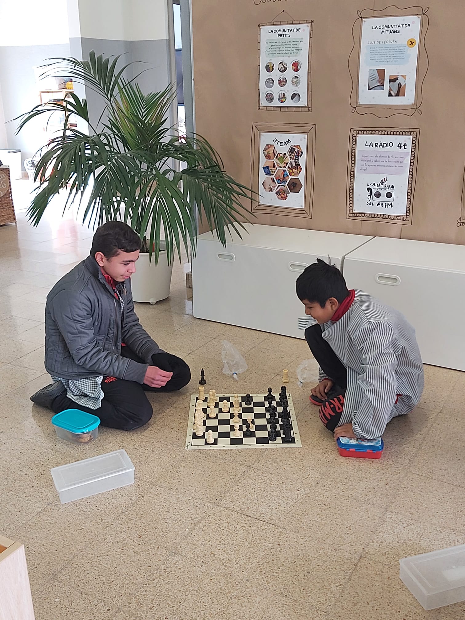 Recentment, els alumnes de la comunitat de grans han començat a jugar a escacs durant les hores de pati. Un espai per pensar, compartir estratègies, respectar els torns i, sobretot, gaudir jugant plegats.