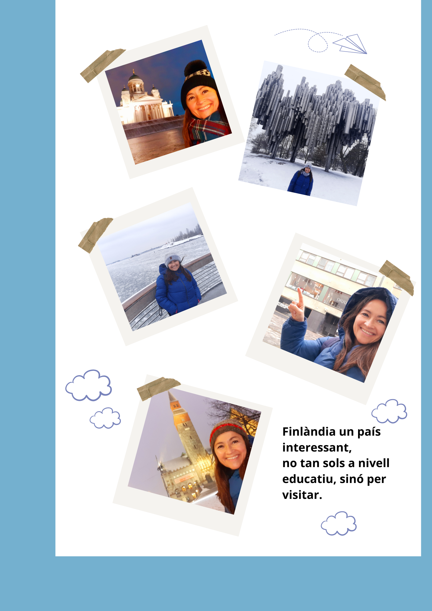 El 14 de febrer vaig començar la primera formació del nostre projecte Erasmus+ “¡Yo sí que puedo!”, la qual es va fer a Hèlsinki (Finlàndia) i es titulava “Finish Approach to Pupil’s Wellbeing: How to bring more activity, fun and joy to classroom”, traduït com “Enfocament finlandès del benestar dels alumnes: com portar més activitat, diversió i alegria a l’aula”.