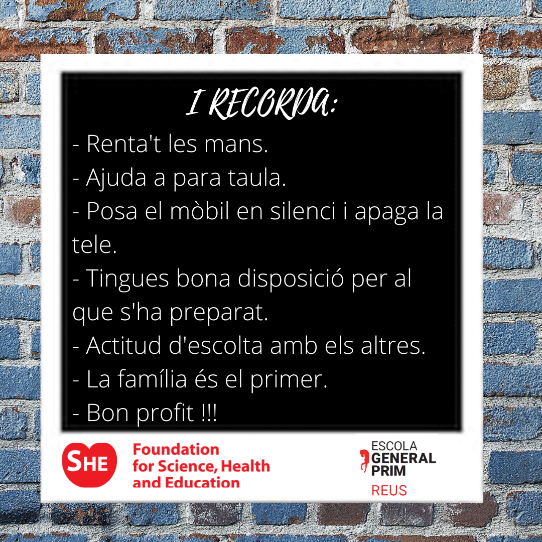 La nostra escola participa en el Programa de Salut Integral de la Fundació SHE (Acrònim de Ciència, Salut i Educació en anglès). És una iniciativa amb la col·laboració del Departament d’Educació, que promou diverses propostes saludables a les escoles, relacionades amb l’exercici físic i l’alimentació equilibrada, entre d’altres.