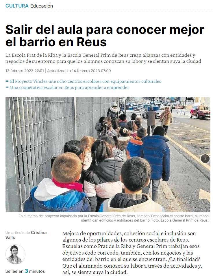 El passat dilluns, 13 de febrer, l’escola va sortir al Diari de Tarragona.