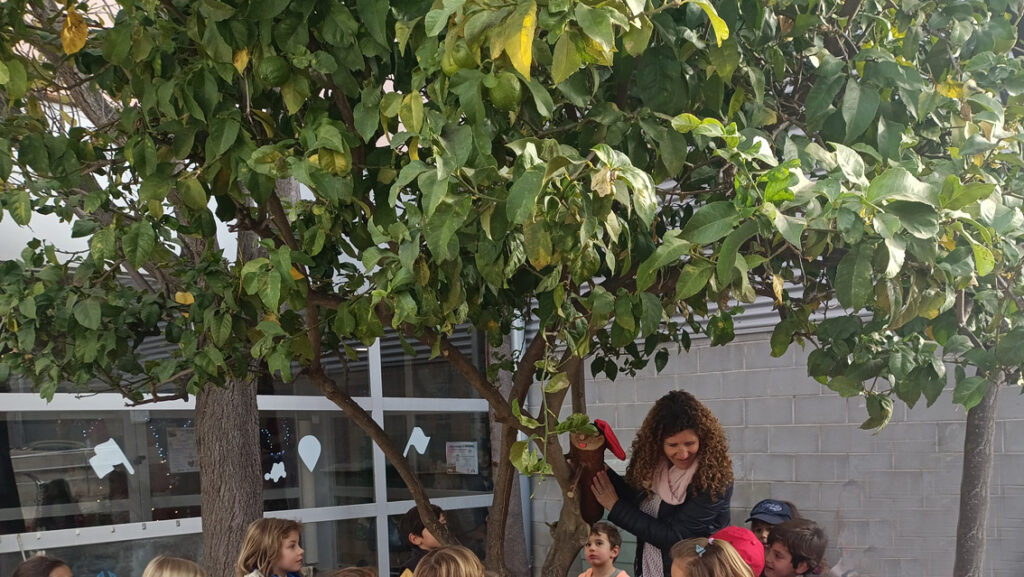 Finalment, hem trobat el nostre tió a l’entrada de l’escola, ben amagat en el llimoner. Ha estat un moment molt emocionant per a tots i totes.