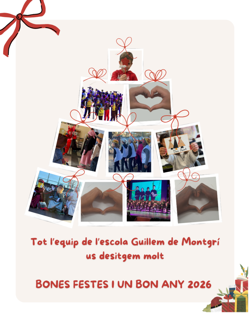 TOT L’EQUIP DE L’ESCOLA GUILLEM DE MONTGRÍ US VOLEM DESITJAR MOLT BONES FESTES I BON ANY 2026!