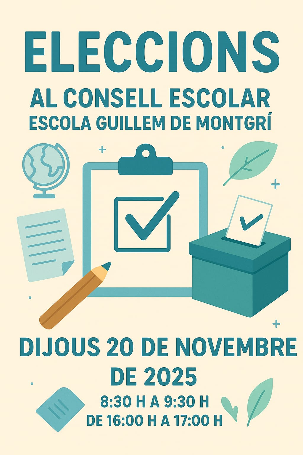 Us animem a participar activament en aquest procés, ja sigui presentant la vostra candidatura o exercint el vostre dret a vot. La implicació de totes les famílies és essencial per continuar construint una escola oberta, participativa i compromesa amb la comunitat educativa.