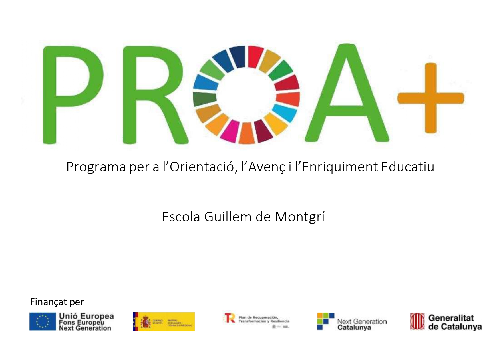 Programa per a l’Orientació, l’Avenç i l’Enriquiment Educatiu (PROA+): Aquest programa té com a eix fonamental garantir l’èxit escolar de tot l’alumnat, amb especial atenció als alumnes que es troben en situació de més vulnerabilitat.