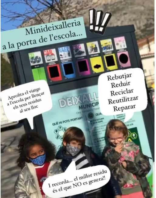 La col.laboració amb alumnat de diferents edats ens fa crear estratègies molt positives. El comitè ambiental, amb altre alumnat de tercer, quart, cinquè i sisè, tenen un gran repte: fer arribar a la resta de companys i companyes allò que han conclòs després de fer el taller sobre els recursos i les fonts de matèria
