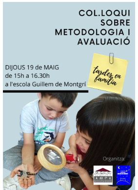 El proper dijous 19 de maig de 15h a 16:30h fem la primera trobada de “Tardes en família”. L’objectiu d’aquesta trobada és poder parlar una estona sobre “metodologia i avaluació”. INSCRIU-TE!!